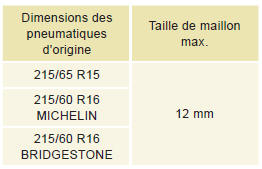 Pour plus d'informations sur les chaînes à neige, consultez le réseau citroën ou un atelier qualifié.