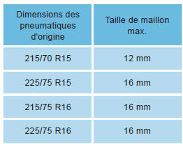 Les chaînes à neige doivent être montées sur les roues motrices. Elles ne doivent pas être montées sur les roues de secours de type "galette".