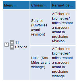Utilisez les flèches haut/bas pour visualiser les informations d'échéance et l'usure de l'huile moteur.